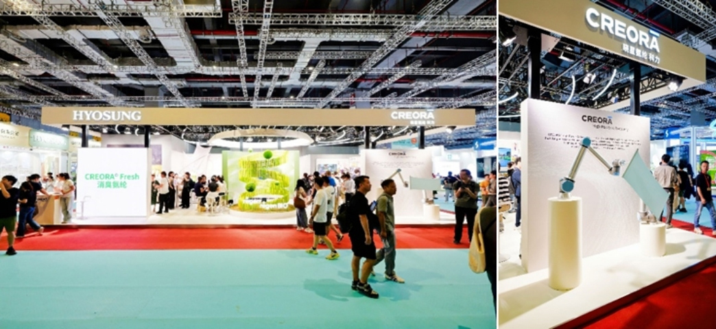 作為全球彈性纖維龍頭,Hyosung 展示其最新一代 creora® bio-based 及 regen® 系列,分別採用生質原料與再生聚酯技術製成。此系列兼具高彈性、快乾性與耐久度,並能有效降低碳排放,成為運動服飾與功能面料的首選材料。