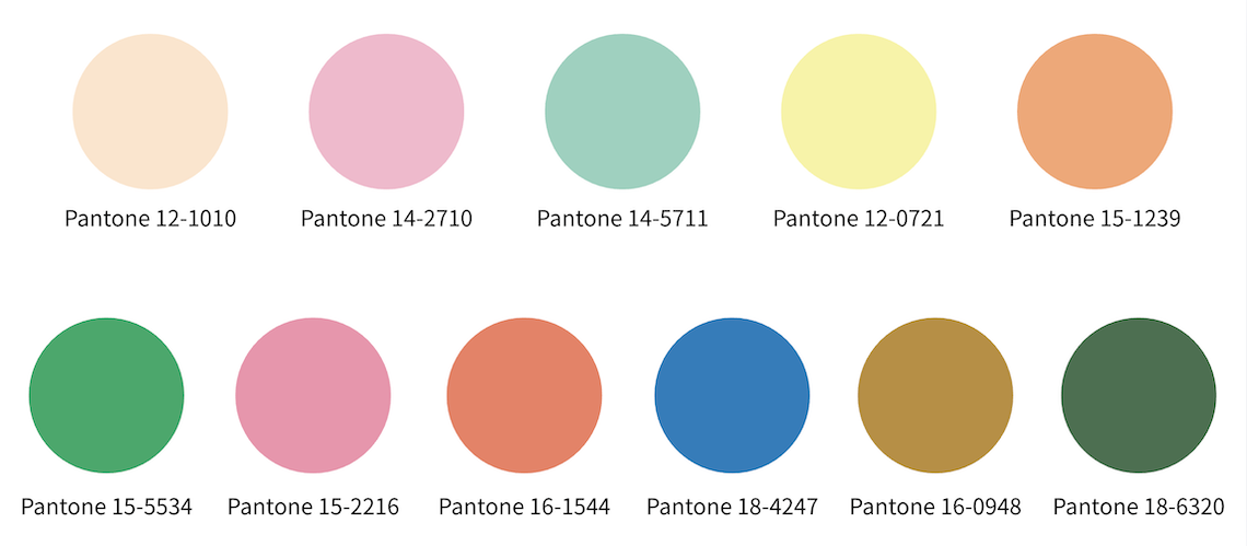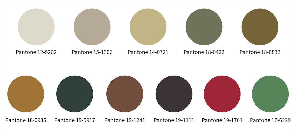 以礦物與大地色調為主軸,搭配鮮明的亮色作為點綴。
