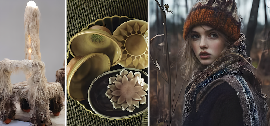 這一趨勢以大地與自然為靈感,將「柔和優雅」與「手工原始感」相融合。呈現慢時尚氛圍,強調永續意識,透過天然染料、手工痕跡與升級再造材質,展現出真實與不完美的質感之美。