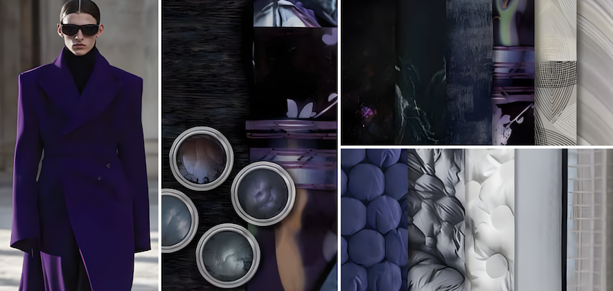 本季趨勢延續 Intertextile 潮流導向委員會(DONEGER | TOBE、NellyRodi、Elementi Moda、井上佐知子)每年發布的風格脈絡,從人類對逃離現實及強化感官體驗的渴望出發,提煉出四大核心面向:溫柔化而返原始 Gentle→Raw、經典轉向戲劇化 Classic→Theatrical、童趣蛻變怪誕 Childish→Bizarre、務實邁向夢幻 Pragmatic→Dreamlike。