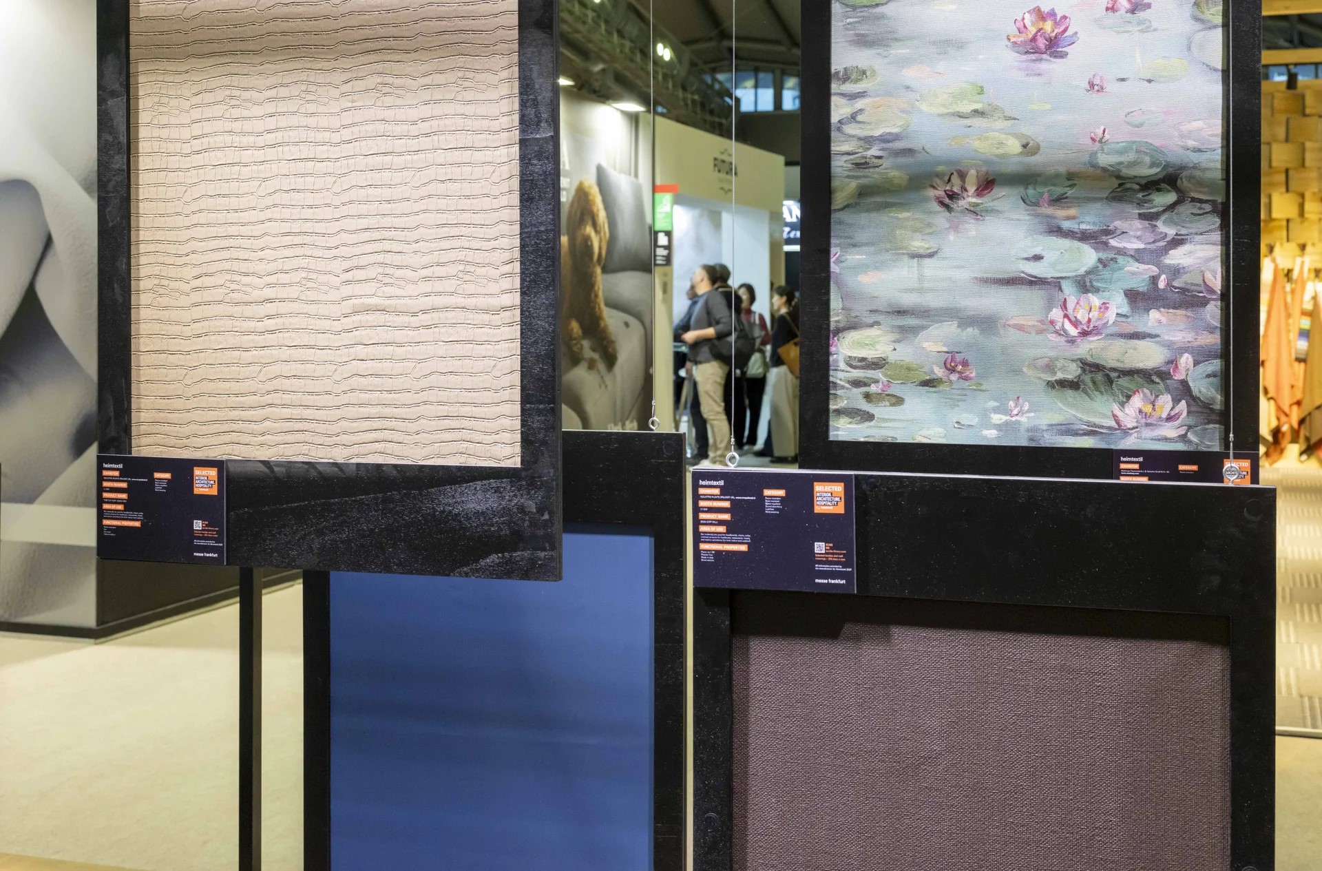 壁面與窗飾工藝展區。從左到右:花卉圖騰的壁紙設計、立體質感的提花窗簾、具層次感的風琴簾。Photos by Messe Frankfurt GmbH / Pietro Sutera & Thomas Fedra.