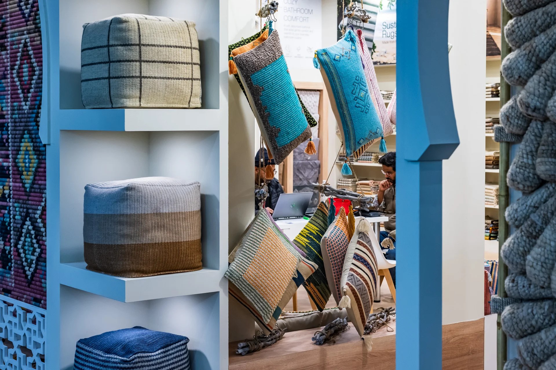 •軟裝家飾品買氣熱絡:特別是抱枕類、佈置類產品。買家積極尋找具備設計感的產品作為居家點綴,現場可見豐富的刺繡、流蘇及絲絨材質系列。