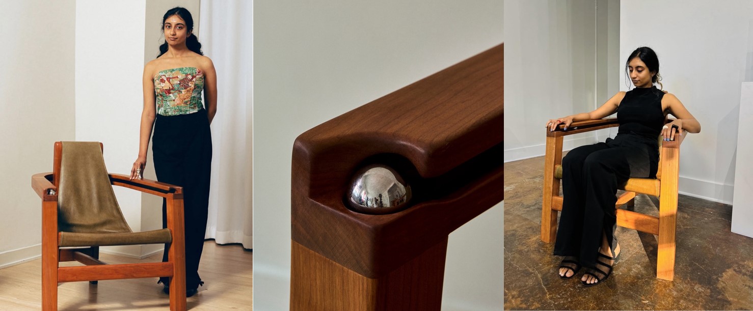 設計師Tanuvi Hegde推出的Reflect椅在扶手內部巧妙地內嵌了鋼珠,使用者在坐著時可以輕柔滾動鋼珠,產生微妙的振動與聲音,提供一種「感官儀式」。這項設計將焦慮管理的行為學概念引入家具,透過觸覺、聲音等非數位方式支持情緒健康,使家具超越靜態功能,轉化為具同理心、邀請互動的「情緒設施」。