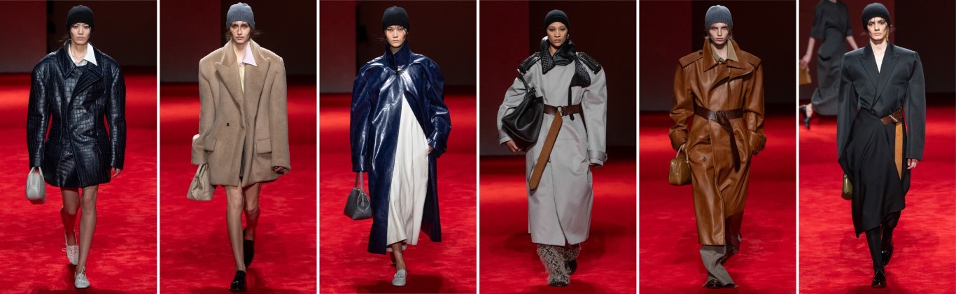 大衣在本季被視為衣櫥的投資核心與造型靈魂,包含雙面大衣、剪羊毛裝飾、海軍及軍事風大衣,以及蠶繭型輪廓。