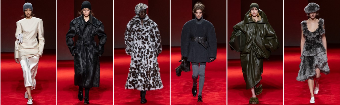 ˙超觸感材質:品牌利用羊絨、剪羊毛(Shearling)與皮草,創造出極具體積感的外衣。
