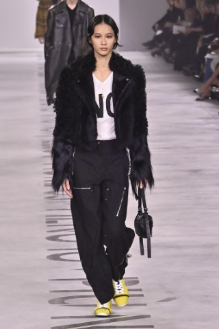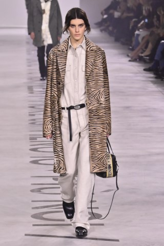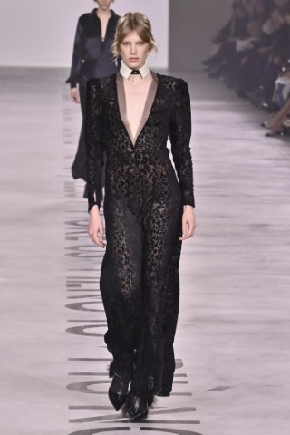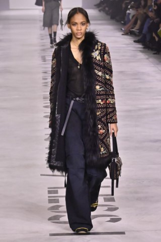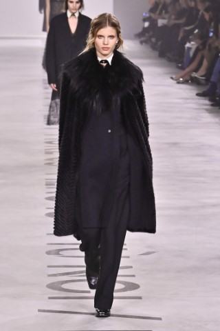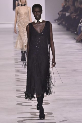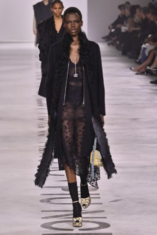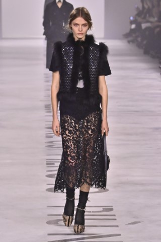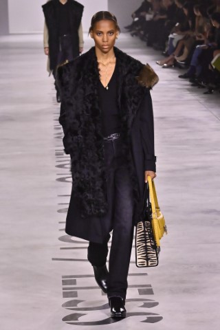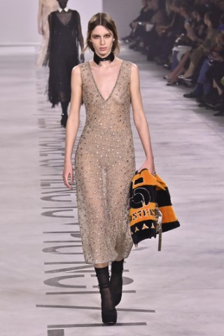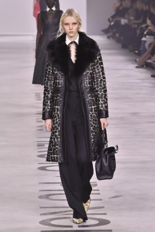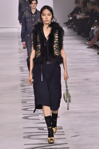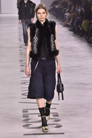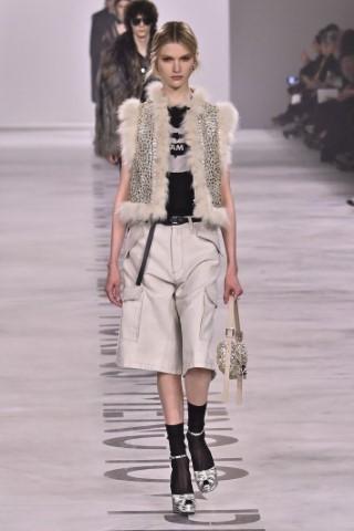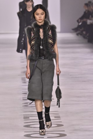 設計細節處處可見野性與感性的交織,利用舊皮草重新製作的狐狸皮大衣、亮片刺繡與珠飾豹紋背心,搭配帶有女性主義標語的足球圍巾,展現極致的層次錯覺。