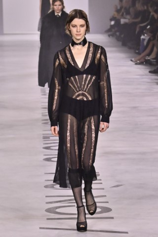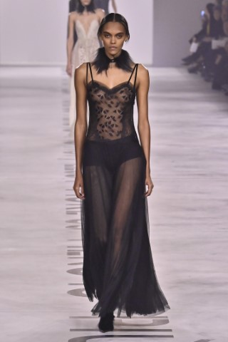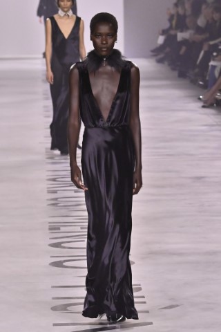 色彩由強大的17套全黑造型開場,隨後轉入斑馬紋、蛇紋與大地裸色系,利用烏干紗、細緻蕾絲與高品質蠶絲材質,營造出內斂、成熟且具流動感的質感世界。
