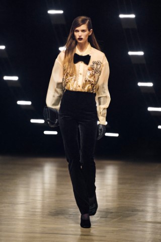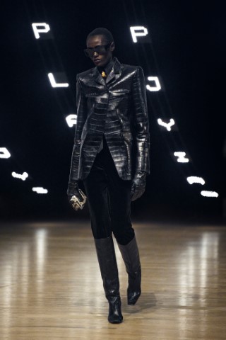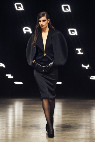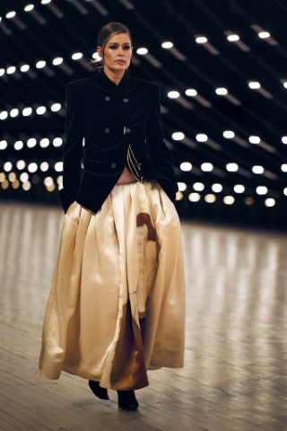 單品聚焦於挺闊肩線的拿破崙式外套、絲絨漆光晚禮服,以及比例煥新的經典 Blake手袋與刺繡絲絨Miriam高跟鞋,展現權威感與松弛感的完美平衡。