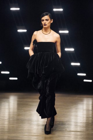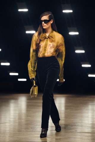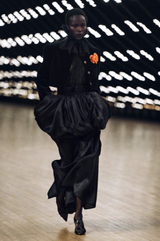 本季以絲絨為核心材質,利用其飽滿的吸光特性營造深邃感,結合啞光羊毛、結構化皮革與刻意脆弱的薄紗緞帶,配以金屬配件泛起的微光色彩,呈現富有生命力的感官敘事。