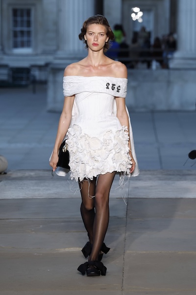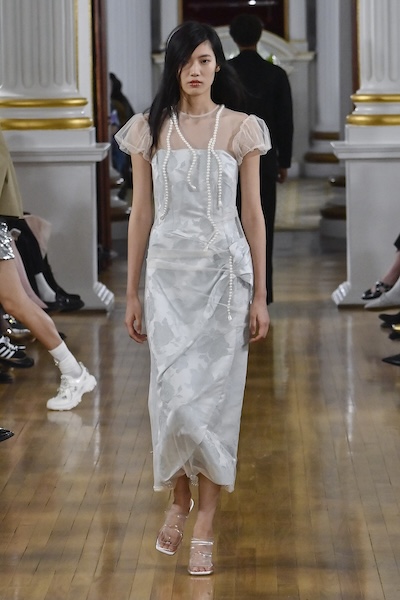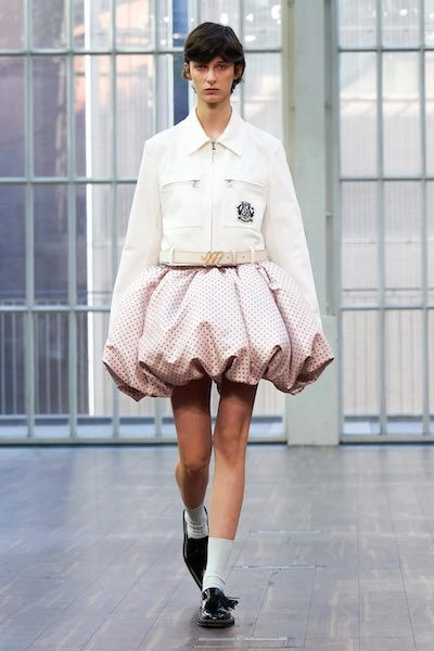 因應女性化風潮,泡泡短袖在本季有回歸跡象,尤其應用於上衣或襯衫之上,呈現出輕盈俏皮。像是 Conner Ives 或 Chopova Lowena 的短袖上衣,以蓬鬆袖型強化肩部輪廓,帶出青春與視覺焦點;Simone Rocha 則以薄紗泡泡袖,更顯柔美與空氣感。