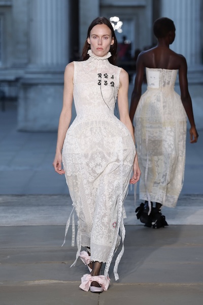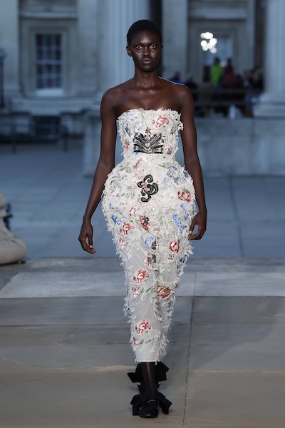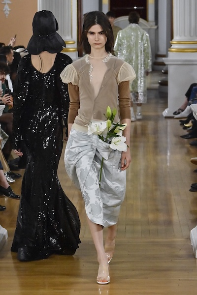 蕾絲、薄紗抽皺與貼花等元素,為服裝增添豐富的紋理與觸感。例如 Susan Fan、Erdem 及 Bora Aksu 的洋裝,因 3D 花卉貼花的點綴而顯得立體且浪漫。
