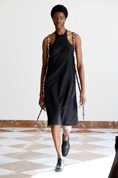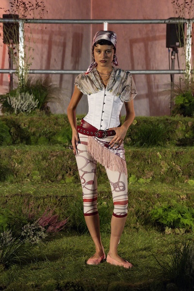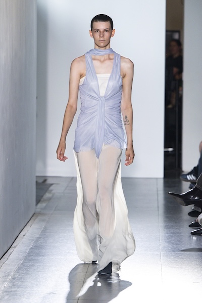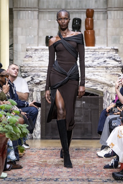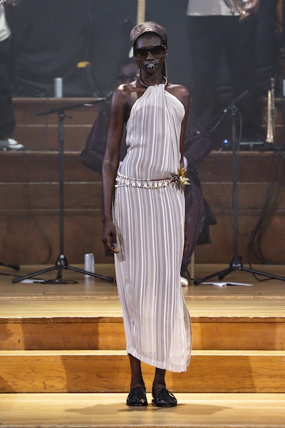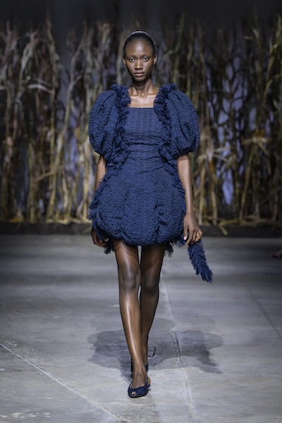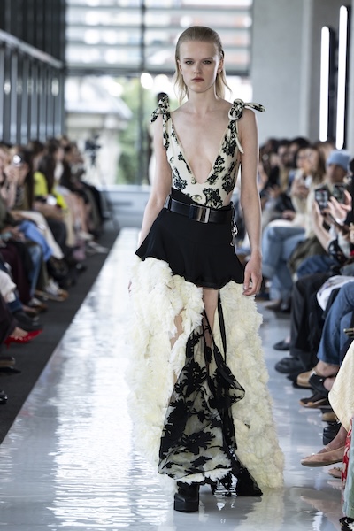 荷葉邊依然是強化女性氣質的關鍵元素,特別是在裙擺設計上,是本季最常見的設計之一。Conner Ives、Toga 與 Susan Fang 的作品,以層疊的荷葉邊展現出充滿動態感的輪廓,隨著步伐輕盈擺動,讓女性的姿態更顯生動。