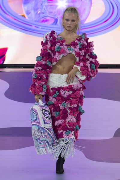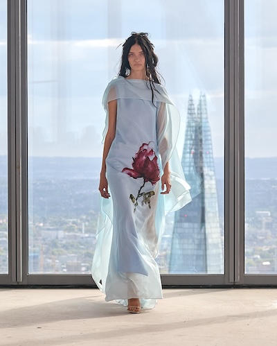 繁茂精緻的花朵與浪漫主題相互呼應,成為本季最具象徵性的設計細節。英倫玫瑰以孤傲的姿態綻放,象徵柔美與力量並存的女性精神。例如Simone Rocha 與 Patrick McDowell 在絲質上衣與洋裝上,以單一花朵作為焦點,捕捉玫瑰綻放瞬間的純粹之美;Sprayground則以立體花卉營造出花團錦簇的華麗景象,展現極致的浪漫視覺盛宴。
