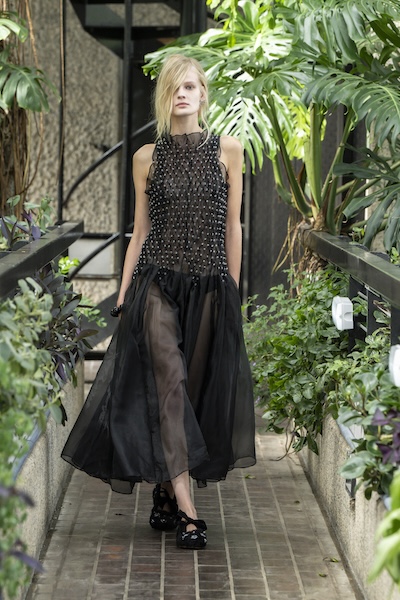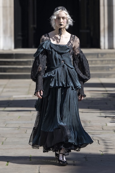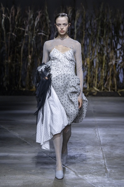 相較於紐約以經典黑白圓點為主,倫敦設計師們選擇更細緻的圓點搭配薄紗,營造若隱若現的復古浪漫。