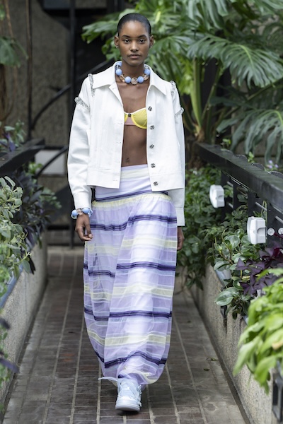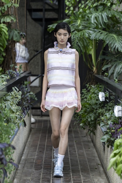 MITHRIDATE的針織 Polo以對比色的袖子和領口細節搭配皮革或場合服裝,擺脫休閒的含義。Susan Fang則以薄紗和淡粉色系,為條紋圖案帶來更女性優雅魅力。