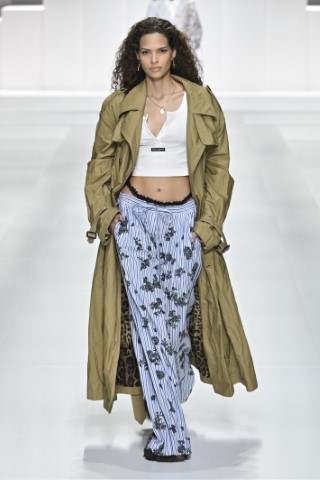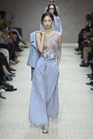 輕薄透明的梭織襯衫與罩衫是夏日造型的理想選擇,既能展現輕透質感,又具層次搭配的靈活性。Blumarine的薄紗襯衫結合抽皺荷葉邊,散發柔美浪漫的女性魅力;Emporio Armani的罩衫外套則以簡約線條展現俐落感,而Anteprima與Sportmax的歐根紗設計則以俐落輪廓及剪接,打造出帶著運動風的夏日風格。