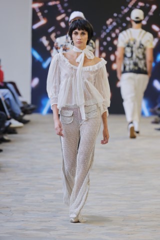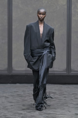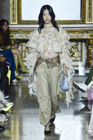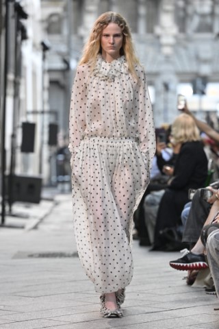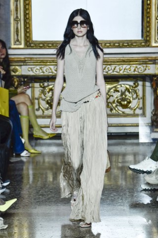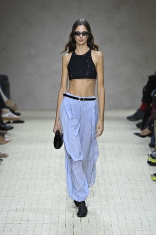 如同2026春夏紐約時裝週,泡泡下擺的柔和量感長褲在米蘭依舊是焦點,搭配束口設計可露出腳踝與鞋履穿搭,搭配超輕薄紗面料形式呈現,是展現波西米亞風情的關鍵單品。如Francesco Murano的誇張氣球褲型展現戲劇張力,搭配涼鞋就是街頭感十足的夏日焦點。