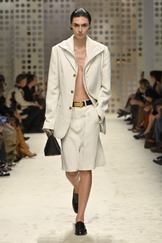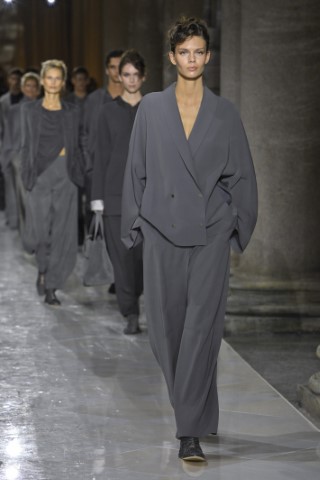 剪裁一向是義大利的強項,寬鬆剪裁的西裝以寬大肩線、鬆弛腰線與及臀長度,搭配搭配闊腿褲、錐形褲或百慕達短褲,呈現出慵懶從容的氣質。如Giorgio Armani與 Ferragamo搭配同面料的寬褲造型,展現自信大方的都會女性形象;Emporio Armani的短褲搭配與MM6的同面料短裙套裝,展現輕盈俐落的都會時髦感。