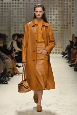 此外,材質的運用也是本季焦點:Sa Su Phi與Ferragamo採用帶有光澤感的面料,低調中流露奢華質感;Ferrari以深沉的銹紅色和紋理皮革為經典單品注入濃鬱的復古氣息;而Tod’s的拼接大衣則以結構感與材質對比,成為都會女性的時髦首選。