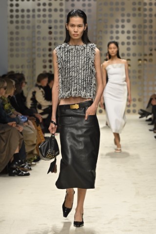 以Prada為代表,米蘭時裝週展現大量鉛筆裙與直筒裙款式,為上班女性提供優雅又時髦的穿搭選擇。金屬色鉛筆裙如Alberta Ferretti與Jil Sander的金、銀色設計,搭配素面上衣即可成為視覺焦點。