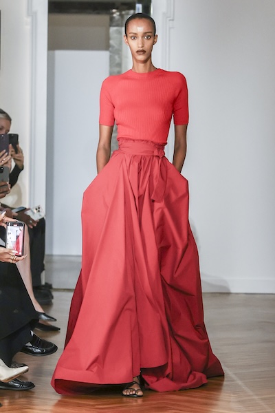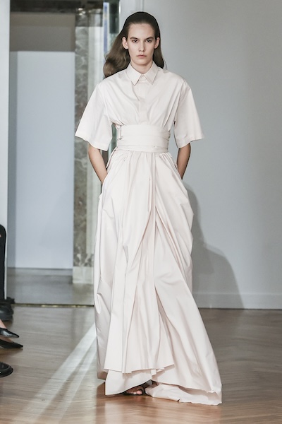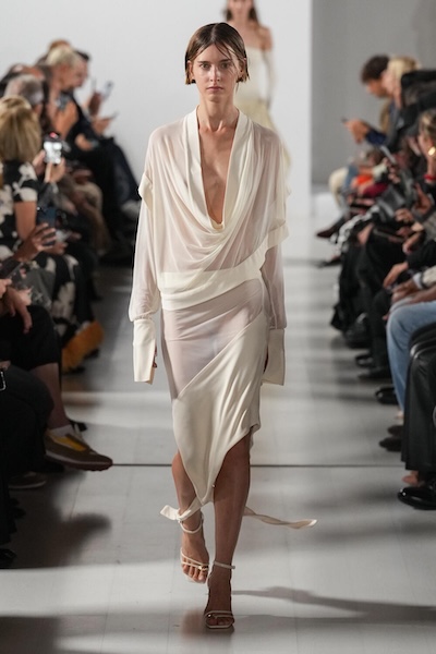 本季以俐落輪廓與簡潔剪裁,突顯布料本身的光澤與垂墜質感,展現極簡中的優雅氣息。例如Sportmax的香檳色繞頸洋裝與Giorgio Armani的顎領細節,以及踝的長度彰顯整體的俐落線條;Sa Su Phi則以極簡輪廓搭配細緻綁帶點綴,大方中帶點俏皮。Francesco Murano運用不對稱設計和垂褶工藝,薄紗和緞面面料,營造出低調而精緻的造型。