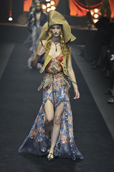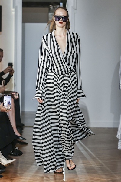 還有Sara Wong透過印花與俐落流動剪裁,演繹低調波西米亞風;Alberta Ferretti以海沫般的柔和色調和家飾條紋印花點綴簡約的吊帶裙,將海岸波西米亞風情演繹得淋漓盡致。