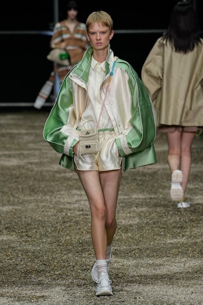 70、80年代的經典輪廓,以嶄新面貌重現。例如短版飛行夾克換上創新的輕盈布料,展現現代感,像是Anteprima的亮面色塊外套搭配運動短褲,散發青春校園氣息。