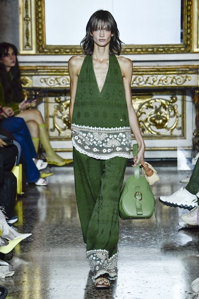 例如Etro以經典的繁複印花堆疊出波西米亞風情;Missoni以工藝感條紋開襟衫搭配高腰短褲,即使穿梭街頭也毫不突兀;Vivetta則以白色為基底,加入綴飾細節,展現俏皮的手作感。