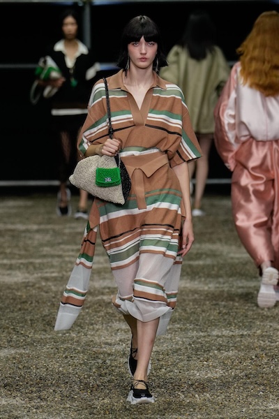另一方面,粗細交錯的色塊條紋搭配Polo領,呈現濃厚復古氛圍,如Anteprima的 Polo洋裝與Missoni的薄荷綠條紋上衣,以鮮明結構與色彩語言喚起懷舊風格。