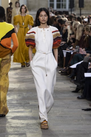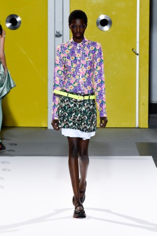 如Leonard的花朵洋裝搭配束腰與圓領設計展現濃厚八◯氛圍;Meryll Rogge的中型日式花卉,而 Sacai則以幾何拼接花卉,展現繁複又平衡的視覺效果。
