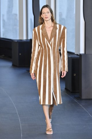 Zomer與Loewe的彩色條紋,前者是水平條紋的校園風,後者以垂直條紋展現都會時髦感。Chanel則以橫條流蘇上衣搭配直條針織鉛筆裙,配以呼應的色彩,展現繁複卻和諧的視覺節奏。