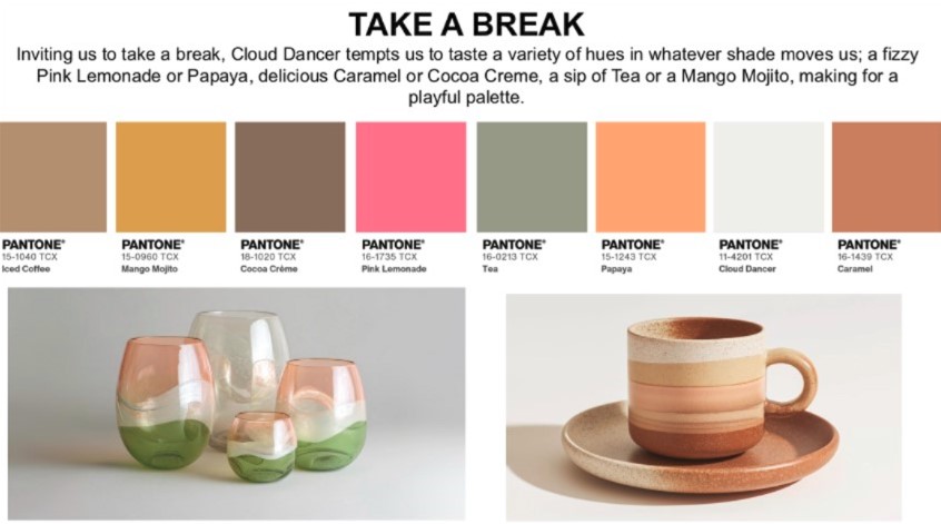 歇息片刻 : 雲上舞白邀請我們暫歇片刻,細味各種觸動心靈的色彩:氣泡粉紅檸檬水或木瓜色、可口焦糖或可可奶油色,抑或淺嚐茶色與芒果莫吉托色 — 共譜玩味十足的色盤。
