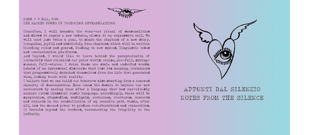 Gucci及Alessandro Michele在Instagram發表:「時尚界目前的失速羞辱了對創造力的重視,我感到必須重新建立聯繫,過濾不必要的事物、淨化出本質,因此決定另闢新路,這也將更貼近我的表現方式。一直以來我都樂於改變,疫情帶來的危機也讓革新不能再拖延。」品牌將於今日發布詳細消息。