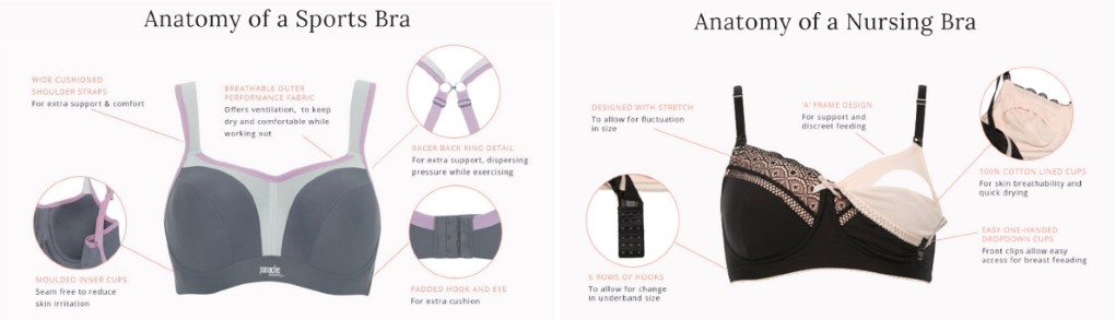 在Figleaves的內衣平台上,商品尺寸和種類繁多,光是尺寸選擇就有從A到K cup,而且各家品牌款式與尺寸可能也不盡相同。針對此,Figleaves除了提供詳細的文字說明引導消費者尋找到適合自己的內衣,拍攝影片教導女生如何正確選擇與穿著內衣,同時提供超長的60天退換貨保證。