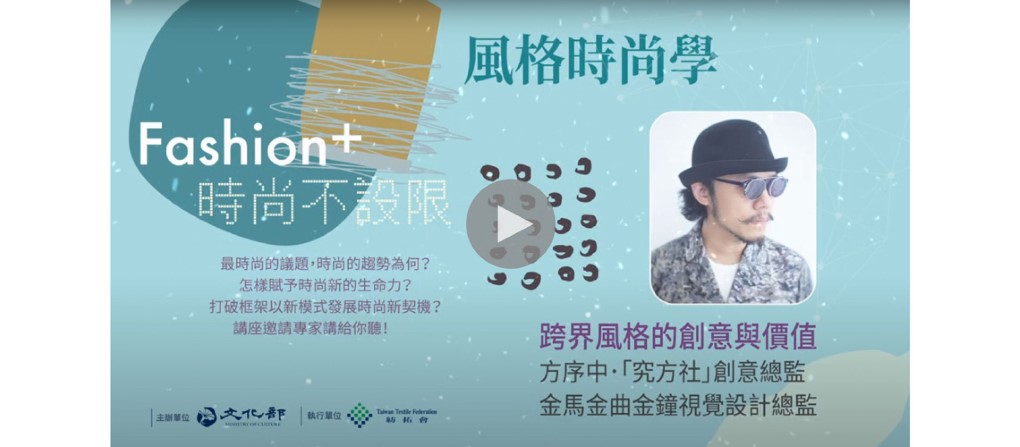 【Fashion+ 時尚不設限】系列講座之內容著作權均屬文化部所有,除有合理使用情形外,應取得著作權人之同意或授權後,方得利用。