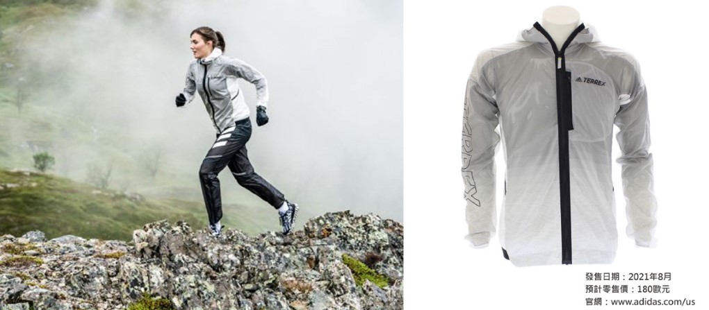 adidas TERREX戶外系列和自行車品牌Megmeister共同合作的Drynamo Merino ECO LS Crew無縫基礎層,不僅減少編織過程中產生的廢物量,並在服裝使用壽命結束時,幾乎可完全降解(達96%),是典型的可持續發展服裝。