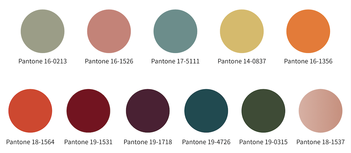 以礦物與大地色調為主軸,搭配鮮明的亮色作為點綴。