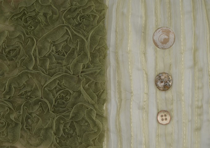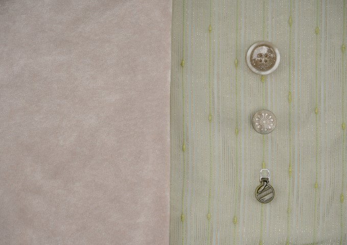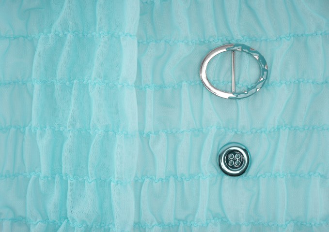 •珍珠母貝歐根紗:利用光學特性呈現虹彩變化的半透明纖維。