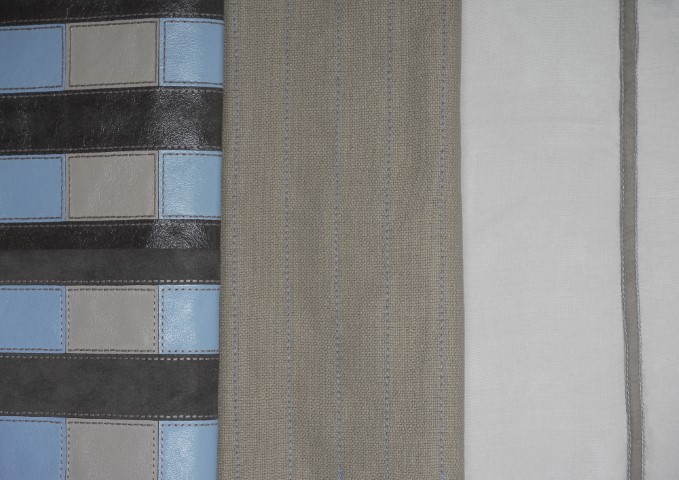 •義大利廠商Manteco除了主打絲綢的光澤感,也順應趨勢將亞麻納入產品核心,推出了兩款代表性的混紡面料:Genoa面料以亞麻與棉混紡,呈現出原始且粗獷的外觀;Eclipso面料混紡亞麻與人造絲(Viscose),克服純亞麻容易過於乾硬的缺點,呈現具有流動且柔軟的手感。並透過獨特的後處理工藝,賦予素色面料層次豐富的紋理,如運用古老的Sabre起絨技術,在織物表面創造出微妙且精緻的圖案,使素色布料在不同光線下呈現出立體感。或利用植絨技術,為輕薄的喬其紗增添了觸感。