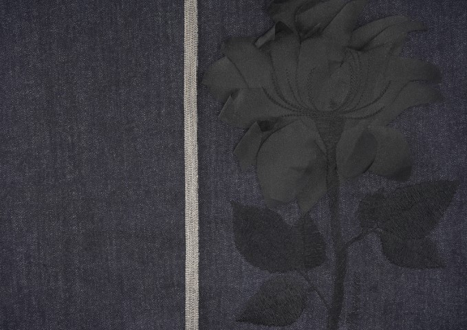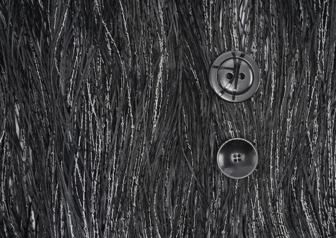•Sabre起毛組織:古老的起毛技術,使組織表面呈現精細的微型圖案與陰影。輔料與細節:賦予面料如「夜間精華液」般的質感與光澤:細掛鉤、黑色琺瑯裝飾、少量水晶應用、漆光或同色調拉鍊,以及深色電鍍金屬(如槍銅色、磨光鎳)。