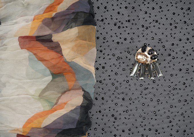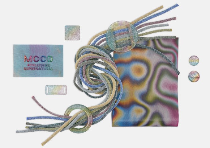 材質:著重功能性與科技感,包含光澤尼龍、珍珠母貝質感歐根紗、感溫/感光反應面料、透氣科技針織布、閃粉薄紗以及輕盈閃亮的再生聚酯纖維。