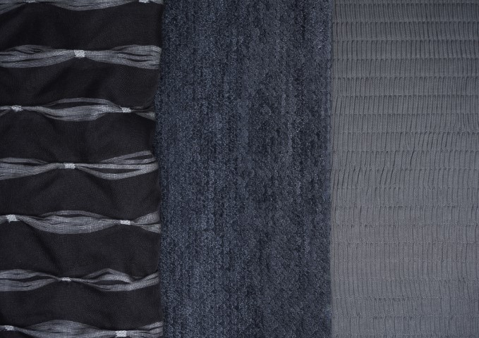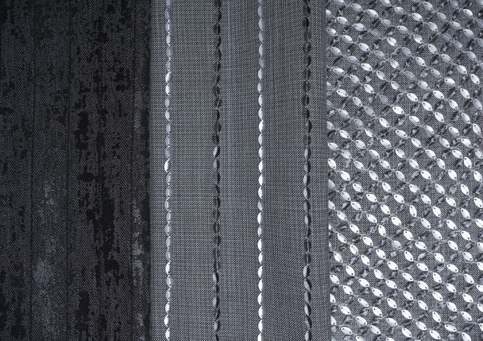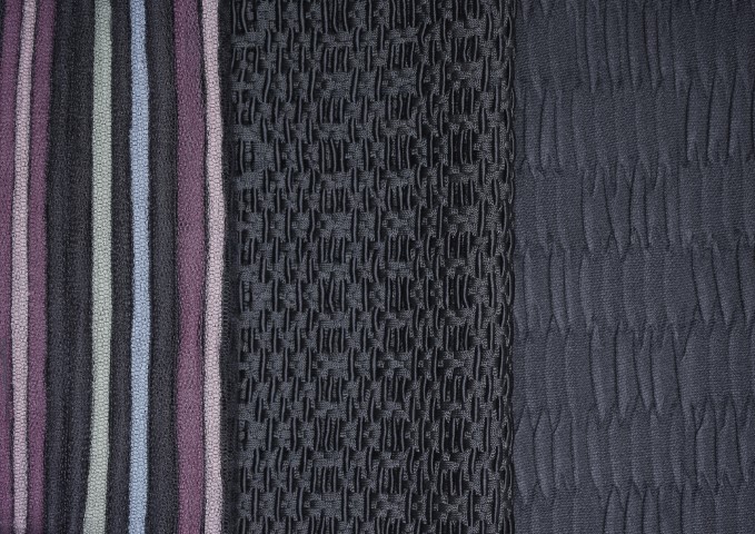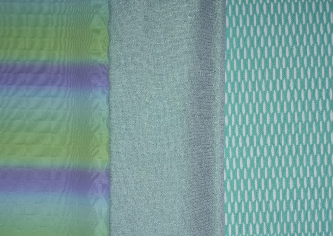 •Eurojersey表示其目前有65%的業務集中在男裝、運動服與成衣領域。本季的設計重點在利用印花技術,在平滑的高性能面料上成功模擬出多種傳統織物的結構效果,包括:珠地紋理Piquet、華夫格Waffle、羅紋Ribbed以及微格紋Micro-check。