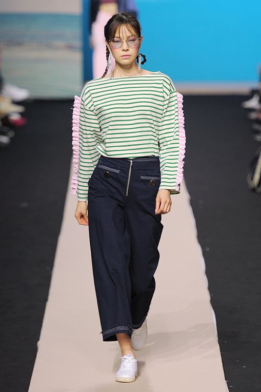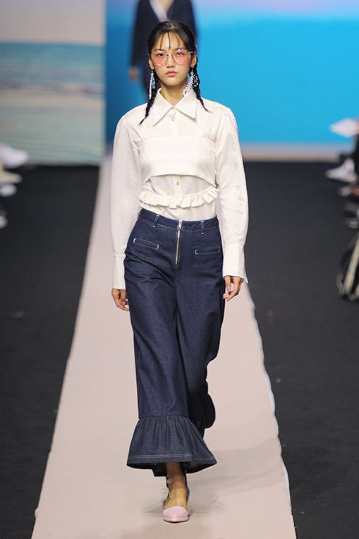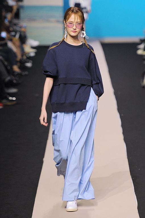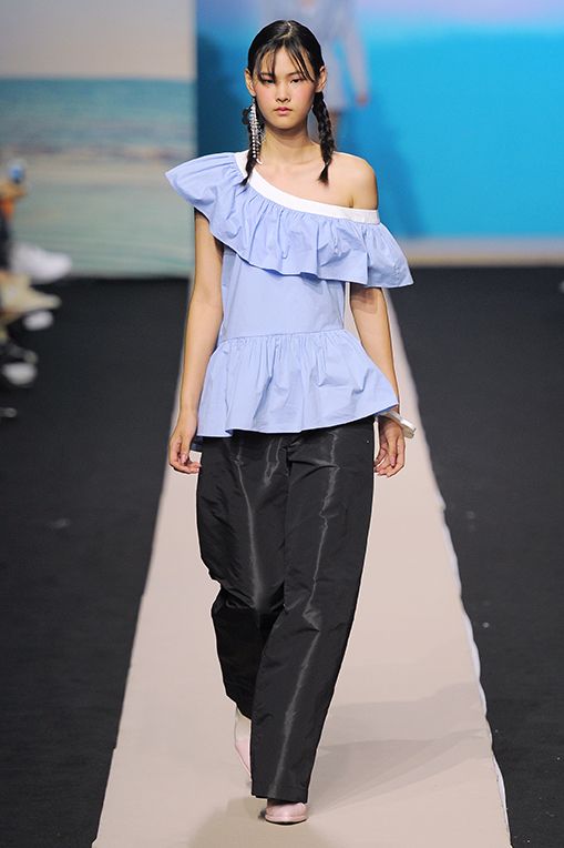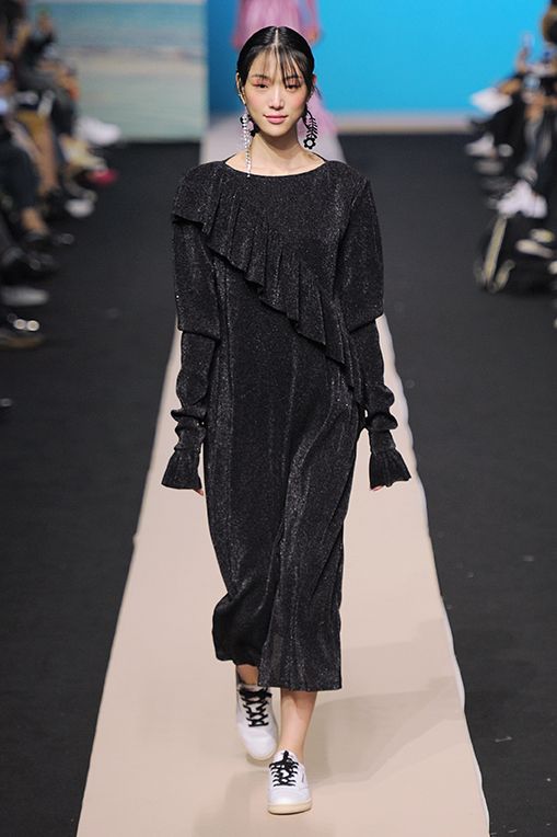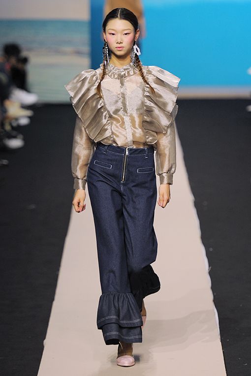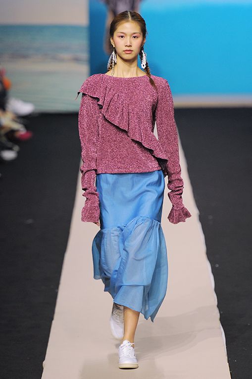 2017春夏Fleamadonna採用鮮豔色彩,像是藍綠、紫色、銀色、粉桃,結合透膚面料、渦紋、格條紋、大量荷葉邊、光潔牛仔布、絲質面料、字母印花等細節,應用於蓬蓬裙、金蔥上衣、民族風一件式長衫、平口小可愛、罩袍、荷葉喇吧褲等核心單品,滿足少女心的綺幻世界。