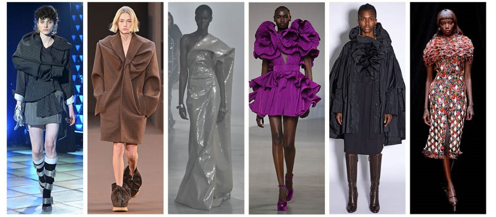 2022/23秋冬巴黎時裝週可以見到許多不追求貼合身型,只為強調服裝的雕塑廓型,各式不同的抓褶技巧令人目不暇給。