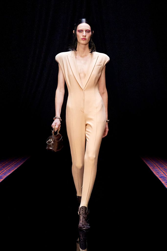 男士西裝有著三百多年的歷史,一直到近代修飾版型開始為女性所穿用。然而女性天生受到體型限制,穿起男性服裝想要撐起氣勢感就需要墊肩來協助。2022/23秋冬巴黎時裝週可以看見墊肩明顯的存在,不論在背心或是外套,加入墊肩後風格可以迥然不同,帶入一股堅強又自信的獨特氣質。