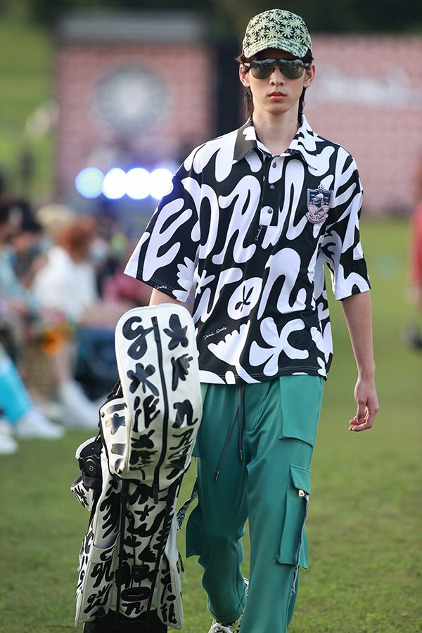本季Daniel Wong以高爾夫球的一日穿搭行為發想,於果嶺上挑戰120米長距離Run Way觀秀視野與自然之力的完美結合。