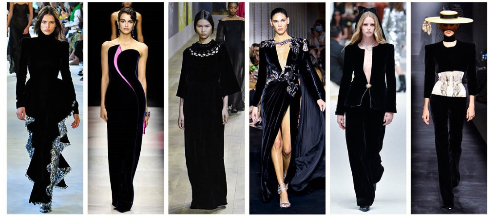 本身帶就有獨特光澤感的天鵝絨,散發著低調奢華氣息,在這次 2022/23秋冬高級訂製系列,設計師保留了天鵝絨本身質地之美,搭配穿插性點綴,畫破單色,成為焦點。