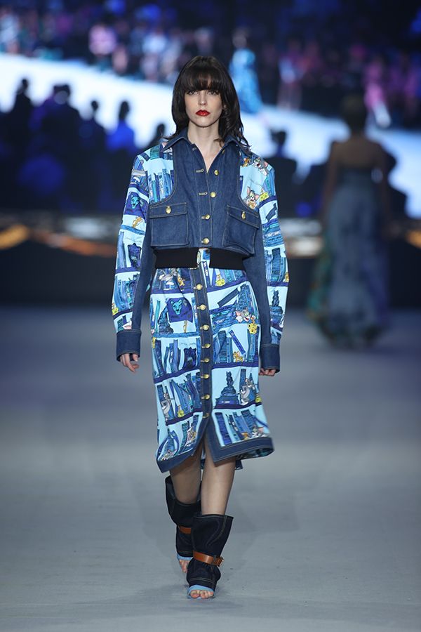 堆疊、交錯、拼接的印花中,不僅有Daniel Wong創業之初最令人印象深刻的絲巾印花元素,也有俏皮歡樂的卡通IP,經典與前衛和諧並存,再次展現了品牌駕馭印花的功力。