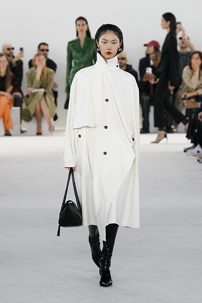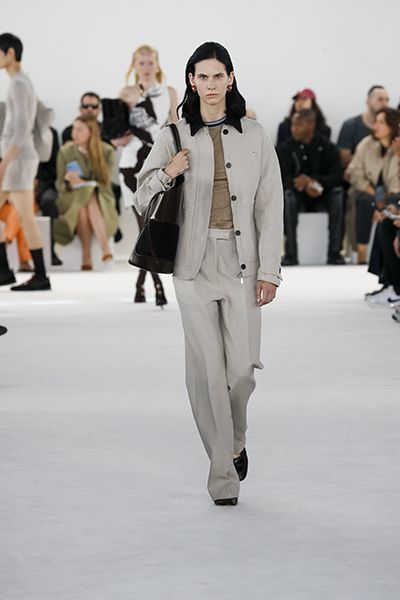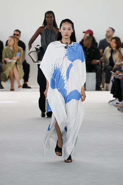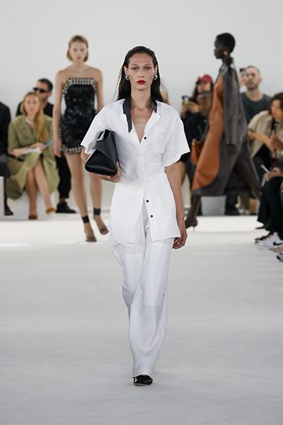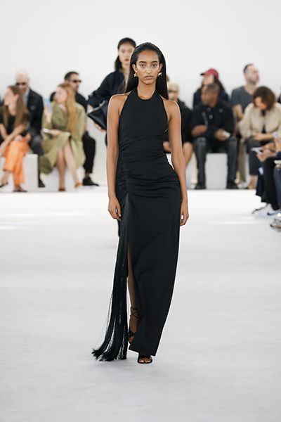 設計師Maximilian Davis把輕鬆優雅的概念結合自己的設計美學,打造出24春夏系列。整體系列感受更為輕盈,更能與人們的日常穿搭產生對話。將六十年代的義大利插畫家風格曲線,以潑濺和扭曲的手法,體現在粉色、紅色、巧克力色和米色的皮革外套之上。簡約自由的線條體現了實穿性。