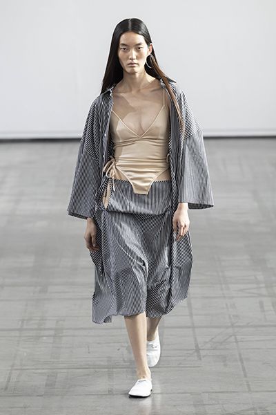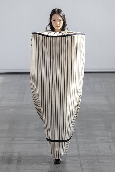 Marie Adam-Leenaerdt在本季作品中展示了她對玩轉服裝結構的實力,過長的衣袖設計、巨大包袋等都成為了設計的亮點之一,而解構式泳衣搭配不對稱設計的裙子和剪裁極其考究的褲子等單品都具有巨大的商業潛力。顏色方面多以黑、白、灰三大無彩色為主要表現色,寶寶粉、橘黃色、杏色、水藍色則是作為點綴,讓整體效果更加出彩。